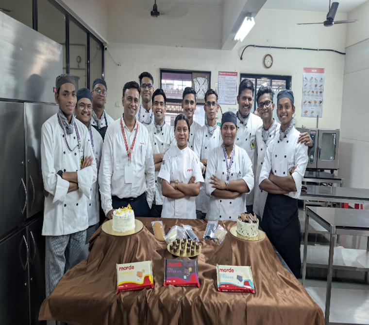 Highlights of the Event: The workshop was conducted by industry experts from Morde, providing students with professional insights.Live demonstration of chocolate tempering techniques, helping students understand the correct method for achieving shine and texture.Preparation and explanation of two types of set cakes, showcasing their differences in method and presentation.Detailed knowledge shared about various types of chocolate and their uses in bakery and confectionery products.Interactive session where students could observe, learn, and clarify their doubts.Exposure to real-world bakery practices and industry standards.Enhanced practical knowledge and skills of TY Bakery Specialization students.